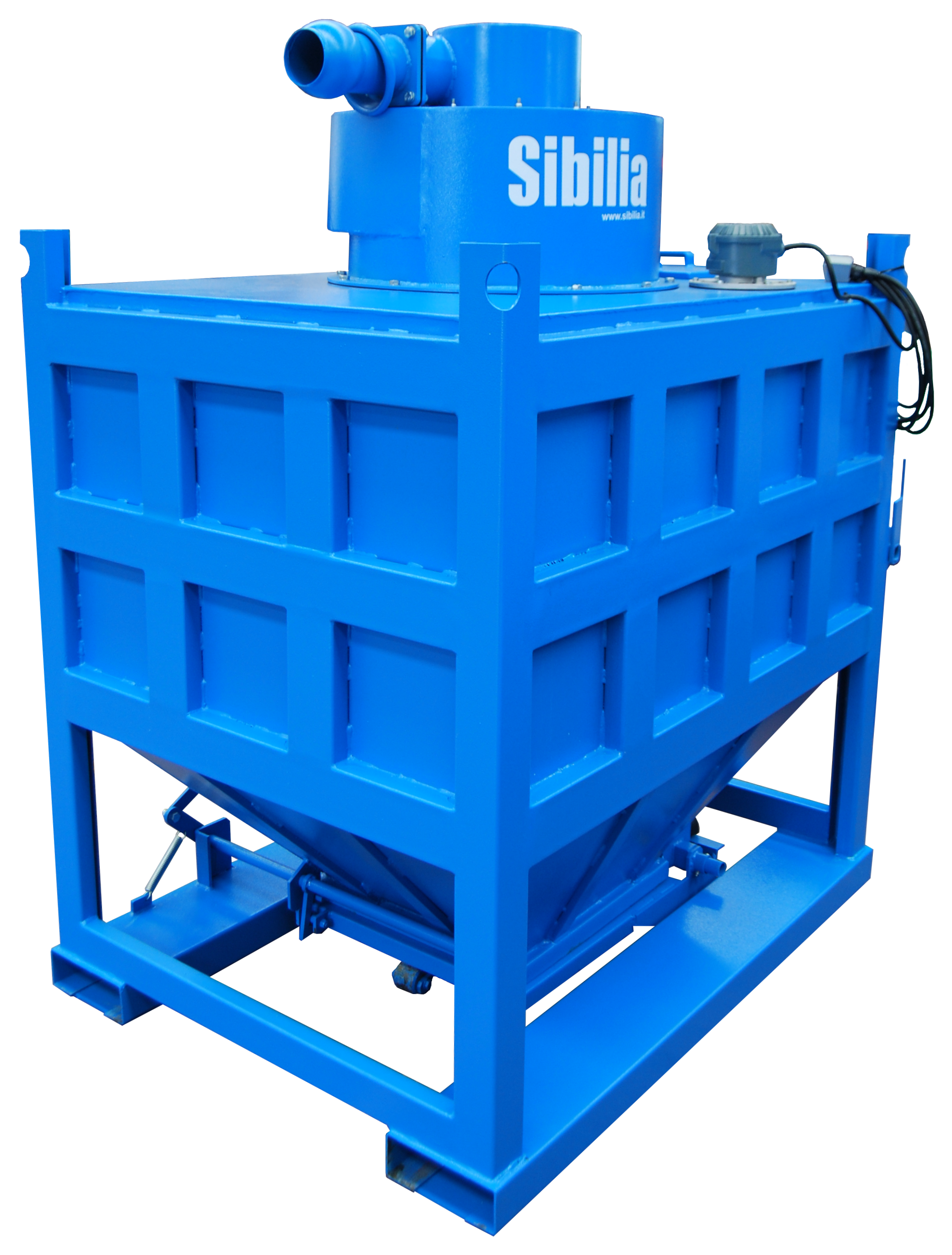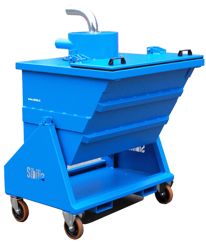 Combined with Sibilia industrial vacuum cleaners, these allow the collection of various materials with relative handling and discharge through an opening at the bottom, side chute or directly into big bags. Available in volumes from 0.5 to 2 m³.