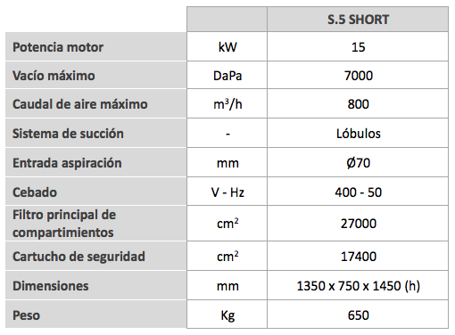 S5 Short es la versión compacta de S5/20, de la cual mantiene las mismas características y prestaciones. Gracias a sus dimensiones reducidas, es la solución ideal para instalaciones estacionarias, integrada a un preseparador móvil o fijo.