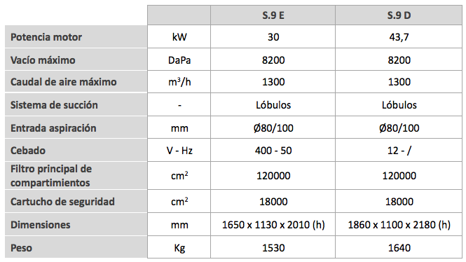 Las dimensiones extremadamente compactas, unidas a un alto valor de vacío, hacen de S9 un modelo versátil apto para cualquier sector industrial.