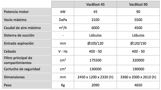 VacBlast 45 es un modelo diseñado para el mundo del chorreado, pero que encuentra su perfecta aplicación en cada sector de la industria. De serie está equipado con bomba de lóbulos, filtro principal de bolsillo, filtro de seguridad, bidón de recogida del material y válvula de descarga del mismo.